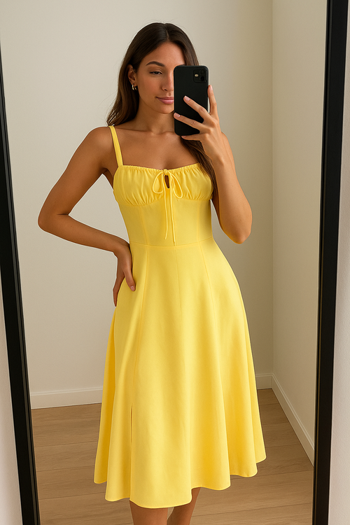 "I needed a pop of sunshine for my weekend in Oxford, and this dress delivered. The yellow is cheerful but not neon, and the fabric moves so nicely. It made me feel radiant. Definitely buying more from this brand."
